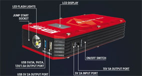 TÄYDELLINEN VARAVIRTARATKAISU JOKA PYSTYY TOIMITTAMAAN 600 A STARTTI VIRTAA AJONEUVOIHIN ,KUTEN MOOTTORIPYÖRÄT AUTOT ,MOOTTORIKELKAT,VENEET. LATAAMAAM USB LAITTEET , ÄLYPUHELIMET JA TABLETIT, JA TARJOAMAAN HÄTÄVALAISTUKSEN.